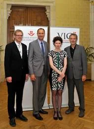 Vienna's city councilman for culture Andreas Mailath-Pokorny (2nd from left) at the presentation of the Leon Zelman Prize 2014, with Martin Krist (left), presenter Werner Dreier (right) and Susanne Trauneck, JWS. (Photo: © PID/Schaub-Walzer)